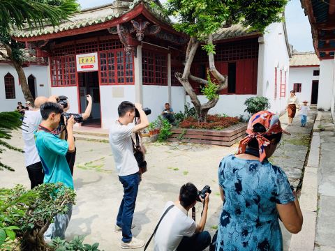 采风团首先来到揭阳市爱国主义教育基地——棉湖镇兴道书院参观。在书院内,采风团一起学习党的二十大精神,市青年摄影协会有关负责人倡导广大青年影友要树牢理想信念,坚定不移听党话、跟党走,要涵养高尚品德,积极培育和践行社会主义核心价值观,用手中的镜头努力引领社会文明新风尚。在宣讲活动结束后,采风团在兴道书院内进行采风(见上图。程少芝 摄)。