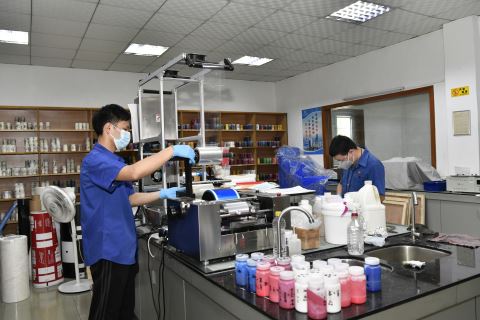 广东锦龙源印刷材料有限公司技术人员正在研发产品。林洁松 摄