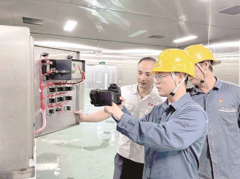 埔田供电所工作人员对竹笋加工企业的线路设备进行用电检查。杨凯丽 摄