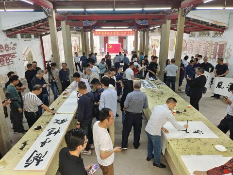 棉湖文明活动实践所组织书画家开展送书画活动。通讯员 摄