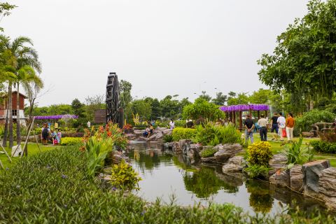 塘埔湿地公园的建设,则是塘埔村变废为宝、将垃圾区变为风景区的一个创举。“原来的滨江大道沿江塘埔段是一片臭气熏天的垃圾区,村民经过都不愿多看一眼,不甘心于家门口有这样一处煞风景的地方,我们决定对其进行大改造,让这片区域彻底‘换张脸’。”黄亮群说,经过规划设计,塘埔村因地制宜建造了塘埔湿地公园,配套建设木结构长廊、矗立的大风车、转动的木水车,种植了各式各样的花草树木及水生植物,营造出多层次立体绿化空间。其后,塘埔村又投入资金对塘埔湿地公园进行升级改造,打造了内河景观、亲水平台、水柱喷泉、多彩灯光秀等,形成“白天赏湿地美色,晚上享光影夜游”的全天候旅游模式。