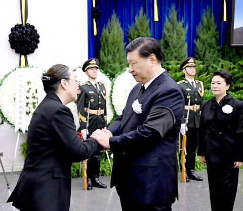 11月2日,李克强同志遗体在北京八宝山革命公墓火化。习近平、李强、赵乐际、王沪宁、蔡奇、丁薛祥、李希、韩正等前往八宝山送别,胡锦涛送花圈表示哀悼。这是习近平与李克强亲属握手,表示深切慰问。新华社 发