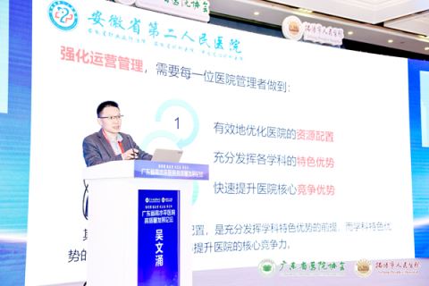 吴文涌教授作《学科赋能驱动医院高质量发展》主题报告。他认为,医院的主业是为病人全生命周期健康管理做好服务,发展是第一要务,要紧扣科学研究和人才培养等核心要素,找准学科发展切入点,形成学科良性发展机制,促成学科建设的优质产出,提升医院核心竞争力,促进医院快速全面高质量发展。