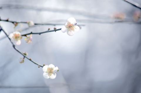 梅花不争不显不露,只是自己悄悄地绽放。初开时花蕊含苞,好像在静静地,默默地等待那个最佳时刻,充分展示自己最美妙的身姿。