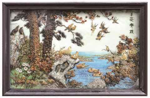经过多年的发展,惠来贝雕作品主要有贝雕挂屏、立件(立体)、屏风(镶嵌)、平板贝雕(浮雕)、平板镶嵌挂屏(磨平)5类。