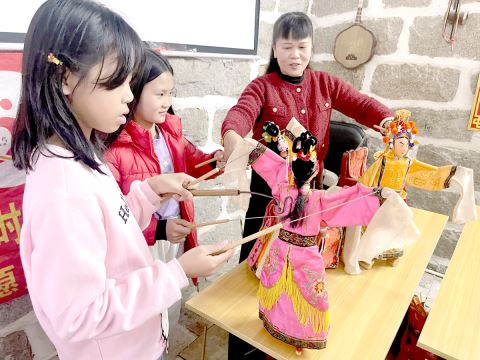 教学表演中,随着林遂香手部动作的牵动,木偶人物灵活地做出各种动作,十分生动有趣,吸引了小朋友们踊跃参与、动手操作,感受非遗文化带来的乐趣(见图。通讯员 摄)。