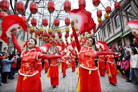 2月18日,演员在萝卜·元宵·糖球会上表演。当日,2024年青岛萝卜·元宵·糖球会正式开幕,活动包含赏花灯、观舞龙、赶大集、游园会等特色民俗活动,吸引不少市民、游客前来参观。 新华社 发