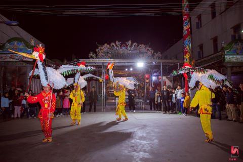 鹤舞表演不受地限制,表演空间灵活,在夜间演出时效果最突出,如流星璀璨,颇为壮观。七鹤嘴中含着吉祥牌或花朵,在夜间明亮剔透,令人目不暇接。