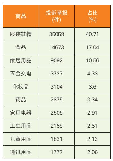 (一)投诉举报量居前五位的商品类别及主要涉及问题