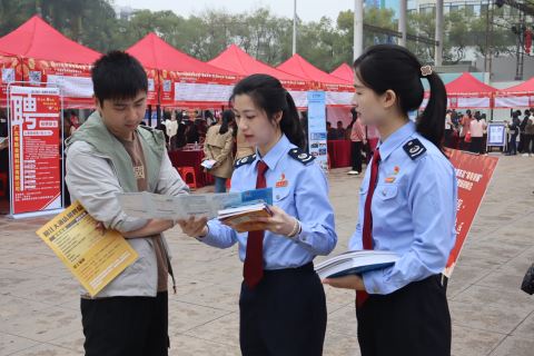 本报讯 (记者 何小妍 通讯员 周晓莲) 日前,揭东区2024年“南粤春暖”暨“春风行动”现场招聘会在揭东榕泰健身广场举行,揭东区税务局组建青年志愿服务团队,主动作为,在春季招聘会现场布设摊位,开展政策宣传并接受咨询。