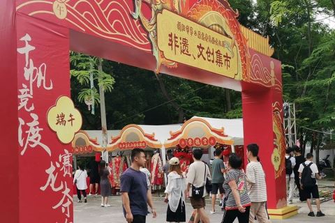 活动现场设置了青狮、风筝、漆器、工夫茶等独具榕城特色的15项非遗项目展位和17个用于展示龙舟、凤舟、潮汕“红桃粿”、粽子等模型的文创摊位。富有潮汕特色的集中展示活动,吸引了众多市民游客,一边观赏榕城非遗、文创精品,一边近距离驻足欣赏非遗传承人们的精湛技艺展示,并与传承人互动交流,沉浸式体验非遗的魅力。