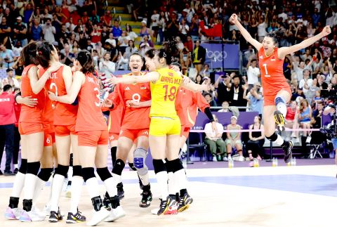 7月29日,中国女排球员在赛后庆祝。新华社 发