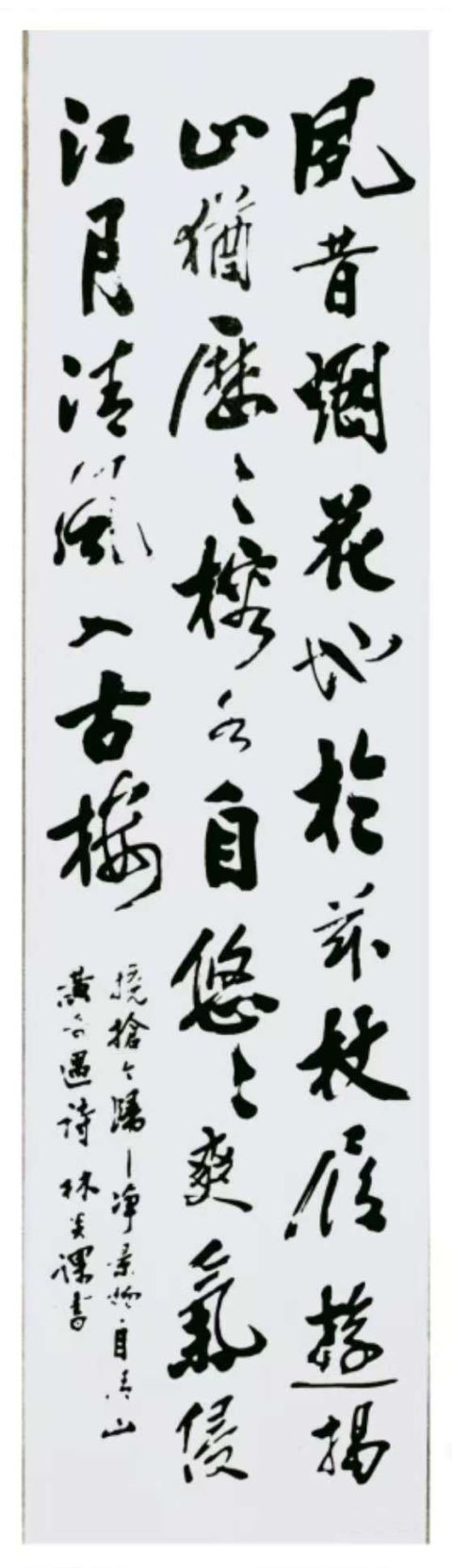 揭阳乃粤东书画重镇,名家辈出,书画氛围十分浓厚,习书者众多,炎课先生就是其中一位较有影响的代表性人物。1924年,林炎课先生出生于华清村贫寒之家,自幼喜爱书法,并立志自学书法,青少年时代就写得一手好字。他出名很早,在20世纪50年代已有作品被选送参加全国流动画展,并多次参加省市县书展。当时的揭阳工人文化宫,常有他的作品展出,企事业单位也常见其题字,如“烟水寻常事,荒村一钓徒。深宵沉醉起,无处觅孤蒲。”等鲁迅的诗,字很精彩,那种书风既呈现二王清新典雅的笔法,又有米芾铁划银钩的雄强笔势,字迹清丽流畅,给人耳目一新的感觉,至今记忆犹新。