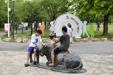 10日,记者在市区儿童公园看到,有部分少年儿童在公园游玩时攀爬至公园内的铜牛雕塑上嬉戏,不但存在安全隐患,而且对公共艺术品造成不可逆的损害,影响城市文明形象。本报记者 摄