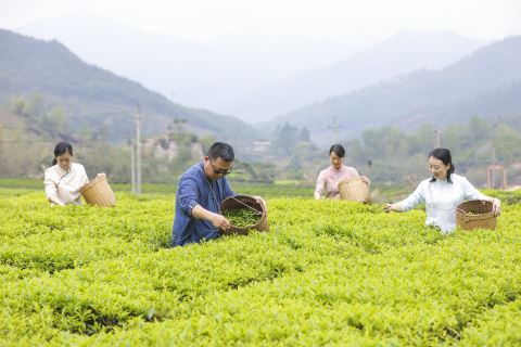 揭东区推进炒茶产业发展,做足“茶文章”。图为茶农采摘茶叶。林碧鸿 摄