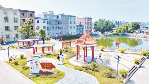 云路镇深入开展人居环境整治工作,为“百千万工程”提颜增色。图为古湖村党建文化公园。