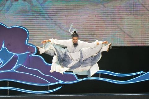 演员在2024世界大河歌会上表演舞蹈《轻舟已过万重山》。