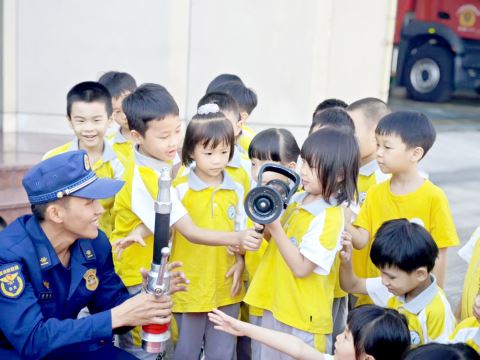 系列活动分为消防安全疏散演练和组织幼儿到榕城区消防救援大队参观学习两部分。在消防安全疏散演练活动中,各班级教师们在演练前通过展示直观的图片、播放生动的视频等多种形式,向孩子们讲解各种消防安全知识,让幼儿学习并掌握火灾逃生的技能。演练正式开始,随着火灾警报声响起,该园教师们默契配合,带领孩子们用湿毛巾捂住口鼻,沿着预定的路线有序撤离到安全地带。到达“安全区域”后,各班级教师立即清点幼儿人数,并汇报班级撤离情况,确保每一位幼儿安全撤离,无一遗漏,整个疏散演练过程既紧张又有序。在参观榕城区消防救援大队活动中,消防员耐心地向孩子们讲解水枪和防护服的功能,帮助他们试穿了消防头盔和防护服,还给孩子们普及消防安全知识以及讲解示范灭火器的使用方法,让他们真正体验到成为小小消防员的乐趣(见图。郭玮杰 摄)。