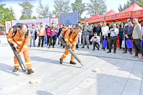 活动现场设置咨询台接受群众咨询,向群众宣传安全生产相关法律法规和安全生产、森林防灭火、防灾减灾等应急管理知识;森防队伍对风力灭火机进行实操,展示“以水灭火”器材;消防部门开展家庭应急自救包、应急灭火设备展示和互动、演练。