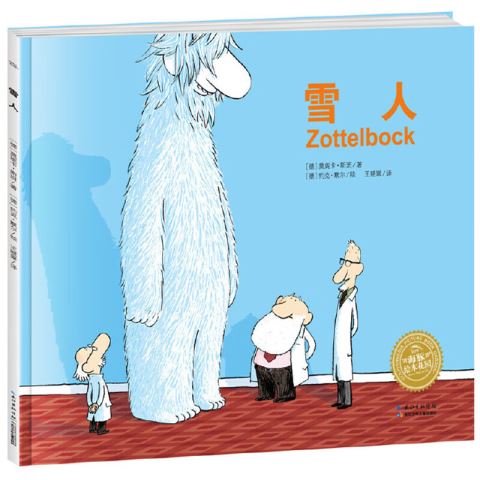 绘本《海豚绘本花园·雪人》讲述的是科学家们历尽艰辛,终于在喜马拉雅山找到了雪人,这个雪人315岁了,身体高大健硕,行为怪异……这引起了科学家们极大的兴趣。罗西塔姆教授把雪人带回家以后,就引起了极大的轰动,科学家们争相研究这个“长毛大怪物”。媒体也连续报道了有关雪人的消息,包括它吃什么、怎样走路等。随着报道的深入,人们对雪人长寿的秘诀感到万分好奇,开始模仿雪人的生活方式,于是新闻媒体报道什么,人们就模仿雪人做什么。如报道雪人把南瓜扣在头上,人们也把南瓜戴在头上;雪人拄着棍子走路或者把香蕉挂在耳朵上等,这些马上都会成为人们纷纷效仿的流行时尚。不仅成年人在模仿,小孩子们也在模仿……