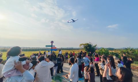 近日,在榕城区登岗镇洋淇村,有一处“世界中心”热门打卡点,吸引了众多航空爱好者和市民前来打卡,只为与飞机近距离同框。