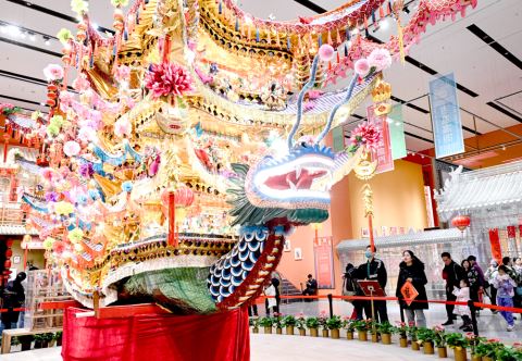 12月21日观众在展厅内参观非遗项目——“龙船灯”展品。