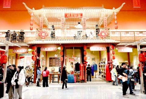 12月21日观众在展厅内沉浸式体验“热闹街市”。 新华社 发