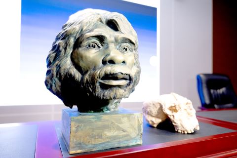 12月26日拍摄的“郧县人”2号头骨化石科学相貌复原头像。新华社 发
