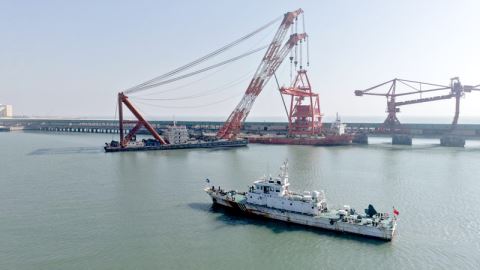据了解,即将建成投产的广东粤电惠来电厂2×1000MW机组扩建工程是粤东地区重要能源保障项目,投入运营后煤炭需求量将成倍增长。新吊装的2台抓斗卸船机装卸能力达每小时3000吨,正式投入使用后年均卸货量预计增加400万吨,将显著提升靖海电厂煤码头的生产效率,有效适配新发电机组对煤炭需求的急剧增长。