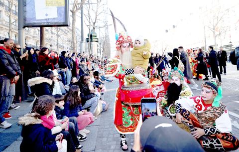 2日,“欢乐春节满巴黎,龙狮贺岁舞香街”春节巡游活动在巴黎香榭丽舍大街举行,来自广东汕头潮阳的西门英歌队在巡游活动中惊艳亮相,让当地民众大饱眼福。英歌是广东潮汕地区的传统民俗舞蹈,融汇戏剧、舞蹈、武术等多种元素于一体,表演气势澎湃,又被称为“中华战舞”,2006年入选首批国家级非物质文化遗产名录。