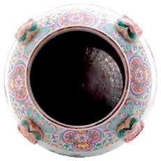 清粉彩牡丹纹四铺首瓷罐