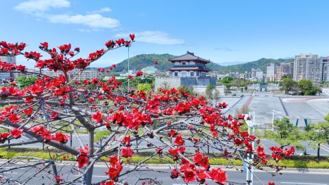春日揭阳,木棉似火般热烈盛放。红云密布枝头,如英雄的赤子之心。这片火红,与晴空万里、绿树成阴的景色交相辉映,构成独特画卷。街头巷尾被英雄之色所晕染,处处洋溢着磅礴气势。满城仿佛沉醉于诗意之中,令人陶醉、心驰神往。杨小琪 文/摄