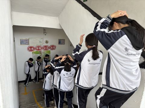 当天上午9时45分,模拟地震警报拉响,师生们迅速采取紧急避险措施,寻找有效的庇护空间,用书本护住头部躲入课桌下方,进行避险。接着,各班级在老师引导下,沿预定疏散路线有序撤离至操场安全区域。从警报响起到全体师生全部到达安全区域,防地震演练用时3分37秒。该校表示,此次演练采用“双盲测试”模式,重点检验应急预案可操作性和师生应急反应速度。演练结果表明,较往次演练平均撤离时间缩短16%,避险动作规范率提升至92%.下一步学校将持续推进应急预警系统建设,筑牢校园安全防线。
