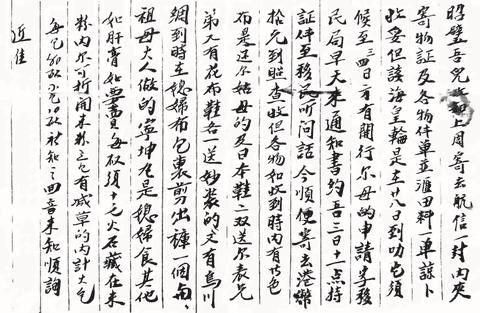 1961年11月1日谢南清寄给谢昭璧的家批,批中写道:“上周寄去航信一封,内夹寄物证及各物件单,并汇田料一单,谅卜收妥。”