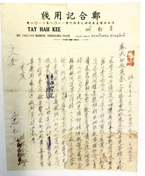 郑应文祖籍揭阳地都,自13岁往暹罗(今泰国)谋生,跟随父亲打理小生意。林金珍祖籍澄海程洋岗乡,出生于暹罗。1921年,她16岁时,因父母双亡,经人介绍与郑应文订婚。翌年,林金珍与郑应文完婚。郑应文和林金珍在暹罗结婚后,夫妻合力经营“郑合记”生意。1943年,郑应文英年病逝。难能可贵的是,此后20余年间,林金珍不但独立挑起家庭重担,而且不间断给亡夫在“唐山”(老一辈华人华侨对祖国故乡的习惯称呼)的亲人寄钱寄物,问大问小问金安。细读林金珍的侨批,她不但寄给“细叔”,还寄给“细婶”和“细老婶”,且每批除了问候,必有寄钱。