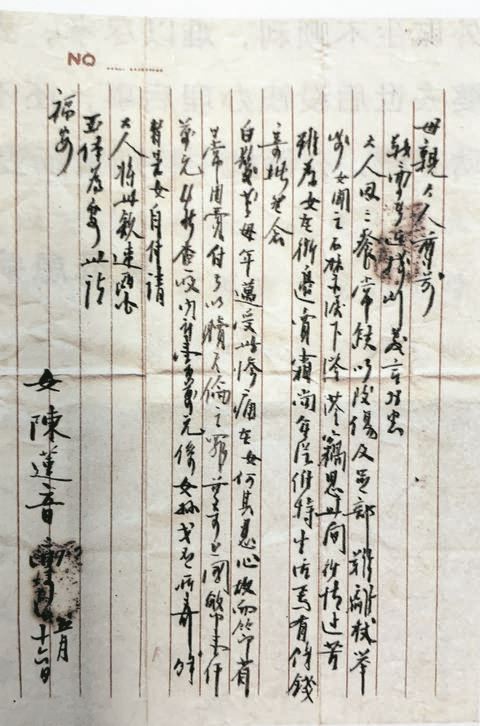在中国人传统中,男主内,女主外。到了艰难时刻,女人一样把挑起家庭重担视为己任。这封侨批就是一位在海外谋生的女儿寄给母亲的信。这位名叫陈莲音的女子在批信中写道:“……大人因三餐常缺,以致伤及足部,难离杖举步,女闻之不禁泪下涔涔。窃思此间行情过苦难,为女在街边卖霜,尚无从维持生活,焉有余钱寄批?然念白发老母年迈,受此惨痛,在女何其忍心?故而节省日常用费,付与以赎天伦之罪……”