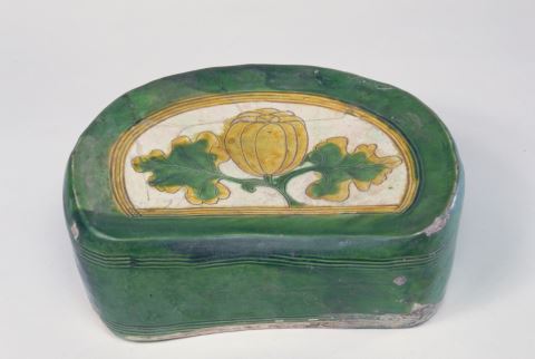 三彩刻折枝甜瓜纹腰圆枕