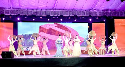 30日晚,揭阳市纪念中国人民抗日战争暨世界反法西斯战争胜利80周年群众文艺演出在揭阳楼广场上演。郑楚藩 摄