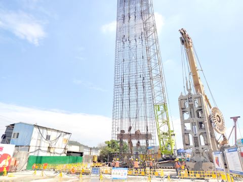 图为钢筋笼吊装施工场面。林洁松 摄 |