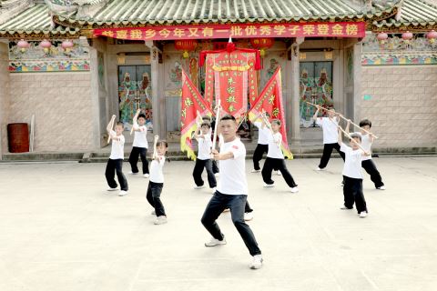 在揭西县凤江镇鸿江村下辖的祠堂头村侯氏宗祠前,少年们扎稳马步,一拳一式刚劲有力;演练棍术时,棍风呼啸而过,尽显利落。传承人侯伟鹏站在一旁,眼神专注地逐一审视,不时上前纠正动作细节。这是揭西鸿江朱家教拳日常训练的寻常一幕,这项独具特色的南拳技艺已成功入选广东省第八批非物质文化遗产代表性项目,在侯伟鹏的积极推动下,正焕发出前所未有的生机与活力。