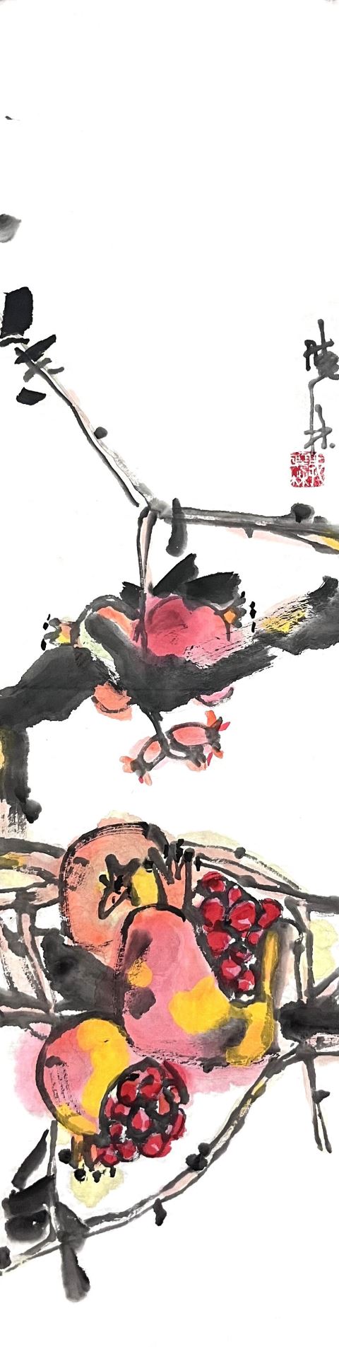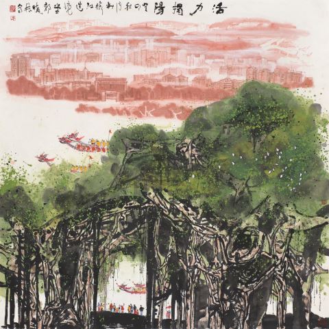 郭晓林:无论山水题材,还是人物、花鸟创作,艺术始终以“人”和“自然”为对象,在观察大自然过程中,通过日益增长的感受,不断思索,试图创作出既能感动自我、又能引发他人情感共鸣的作品。借用曾与画友们共同结集的画册名“关注与表达”,当下所秉持的正是这一理念。以绘写石榴为例,从西安到南澳,再到本地,不同地域的石榴形状、大小存在显著差异,就连裂果的形态、果籽的排列也各有特点。面对这些区别,我先观察思考后,再进行概括表达。古榕,是我近几年创作中另一常见题材。作为潮汕人,榕树于我而言,已超越 “随处可见的树木”这一表层意义,它承载着独特的文化寓意与人们的美好愿景。在潮汕地区,榕树常被当地人称为“神树”,是守护整个乡寨的象征,寄托着对美好未来和子孙后代的祈福,以及对美好生活的祝愿。