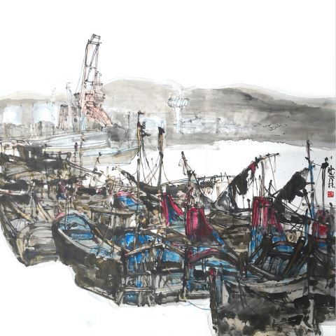 记者:您从事多年设计工作,室内装饰设计中的空间构成、材料等实用美术的经验对您的国画创作有哪些启发?反之呢?