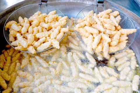 炸制是最后一道难关。油温需控制在140摄氏度左右,中小火慢炸约3分钟。师傅凭经验观察虾枣的颜色,待其表面变成均匀的金黄色,便可捞出沥油。“炸太短时间里面还不熟,而炸太过,口感会柴,所以这个度的把握很重要。”