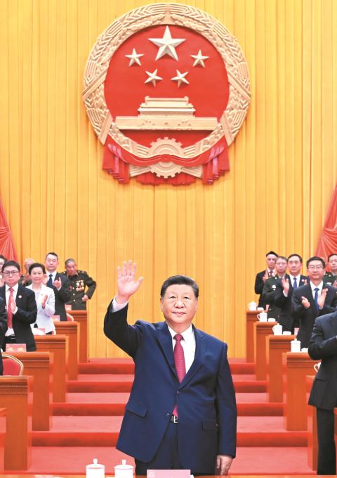 上午10时30分许,在欢快的乐曲声中,习近平等领导同志走上主席台,全场响起长时间的热烈掌声。