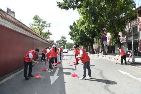 党员干部在古城主要街道开展清洁行动,共同营造整洁、文明的城市环境。林洁松 郑楚藩 摄