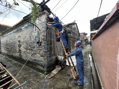 与此同时,揭阳供电局全面加强本地防御工作,积极做好用户告知与安全隐患排查。变电管理所迅速部署,组织巡维人员对包括500千伏岐山站、110千伏溪西站在内的46个变电站开展站外隐患“地毯式”特巡。通过政企联动机制,供电工作人员主动联系村委会及居民,及时加固、清理铁皮屋、棚架、塑料薄膜及堆放垃圾,并向废旧物资回收站、新建楼房相关责任主体进行防风安全宣传,提前消除潜在风险,保障变电站运行可靠。