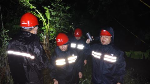 “风雨小一点了,我们快点出发勘察,组织抢修!”晚上8时,揭阳供电局抗灾复电抢险队队长望着窗外渐弱的雨势,快速部署任务。队员们迅速将接地线、绝缘绳、照明设备等抢修工具装车,与江门斗山供电所队伍汇合,组成联合抢修队,向着故障点进发。