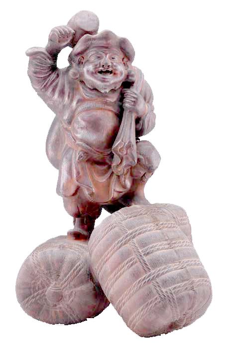 紫砂陶塑。上为工匠,右手握木槌举在头顶,左手屈于上胸握披肩汗巾,两足踏在两纱捆上。造型优美,形象逼真。