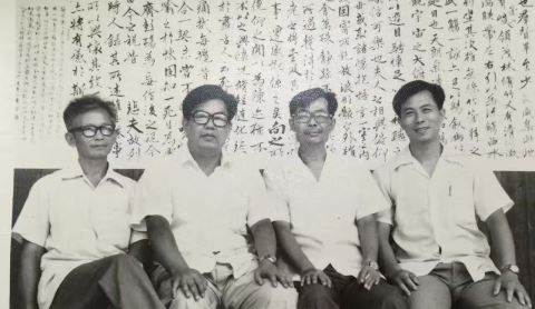 胡天民与书画家佘惠文(左一)、蔡叔庸(右二)、陈锦雄(右一)聚会。 资料图片