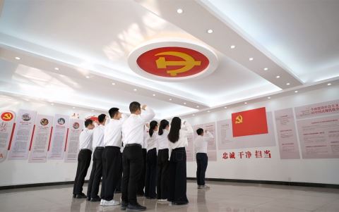 揭东区纪委监委组织委机关新进纪检监察干部开展重温入党誓词活动,帮助他们扣好廉洁从政“第一粒扣子”。